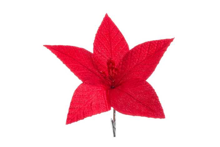 PICK POINSETTIA CON CLIP POLIESTER ROJO 24 X 24 X 10 CM