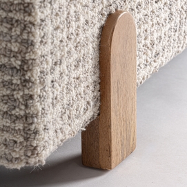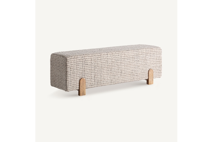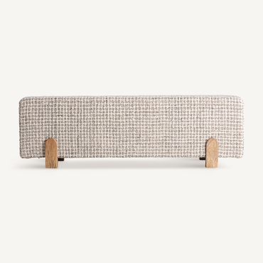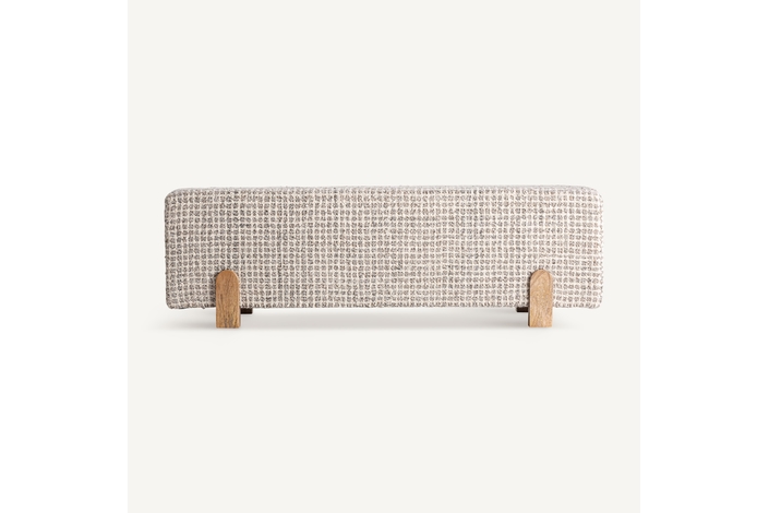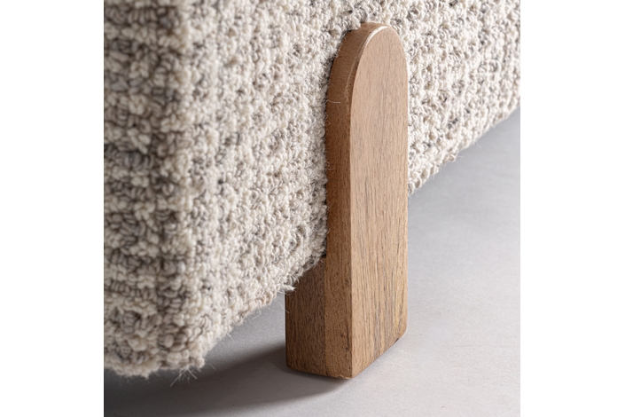 El Pie de Cama Beccles de VICAL aporta armonía y suavidad al dormitorio gracias a su tapizado en lana beige. La base en madera de mango completa el conjunto con una presencia elegante y contemporánea.