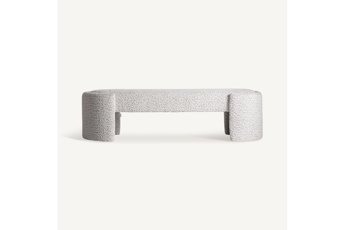 Pie de cama Cades de estilo contemporáneo, fabricado en poliéster en color blanco roto con acabado jaspeado, combinado con madera roble.