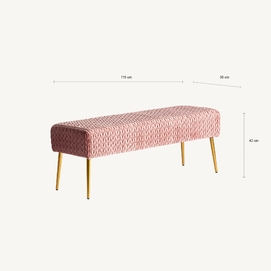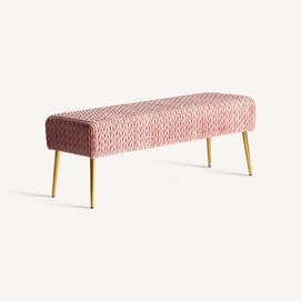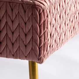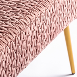 Pie de cama esine, en color rosa, de estilo art deco. Fabricado en terciopelo, combinado con acero y madera dm. Producto desmontable.