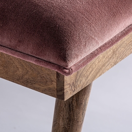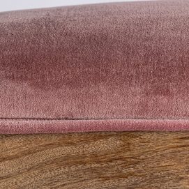 Pie de cama tardiano, en color rosa, de estilo shabby chic. Fabricado en madera de mango, combinado con terciopelo y espuma. Producto desmontable.
