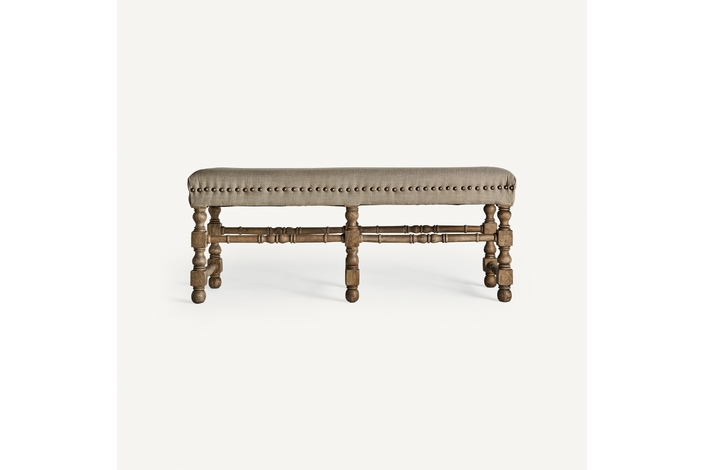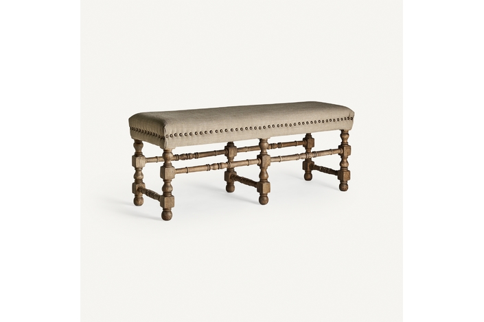 El Pie de Cama WANGEN de VICAL home, de 128x43x53cm, es la fusión perfecta de funcionalidad y estética. Hecho de madera de mango y tapizado en lino natural, este mueble añade un toque de sofisticación y comodidad a tu dormitorio. Es el lugar ideal para sentarse, relajarse y disfrutar de la serenidad de tu espacio personal.