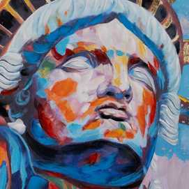 Pintura sobre lienzo marco poliestireno. 80% pintado a mano. No incluye sistema de anclaje.