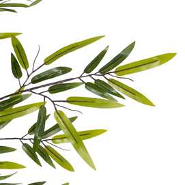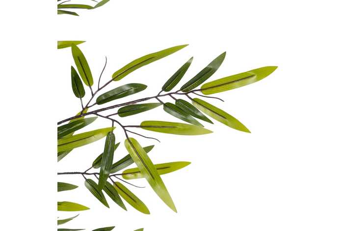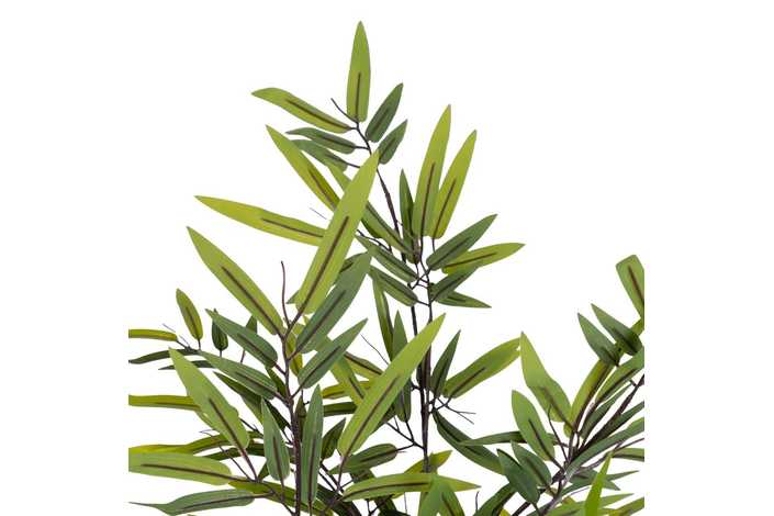 Material del tronco: Bambú real. Material de las hojas: tejido. Material del macetero:PVC Relleno del macetero:Cemento. Base del macetero:17cm. Altura del macetero:15cm.