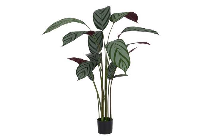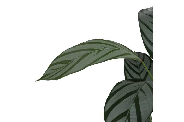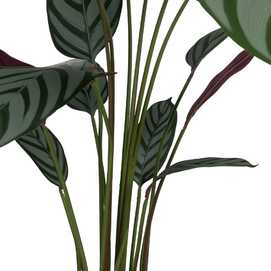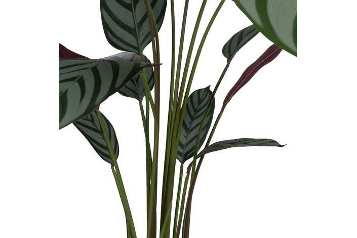 Ctenanthe setosa. Cuenta con 15 hojas. Material del tronco:PVC Material de las hojas: Tejido. Material del macetero:PVC Relleno del macetero:Cemento Base del macetero:15cm. Altura del macetero:13cm.