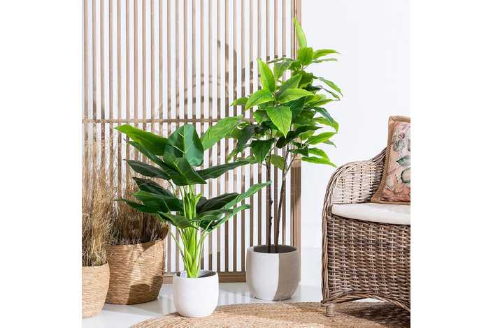 Material planta: PEVA, polietileno, hierro. Material maceta: polietileno.