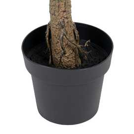 PLANTA: Materiales:Poliéster y hierro. MACETERO: Color negro. Medidas: Alto:17CM Base:14X14CM Boca:22X22CM. Materiales: Polietileno. Relleno:Cemento.