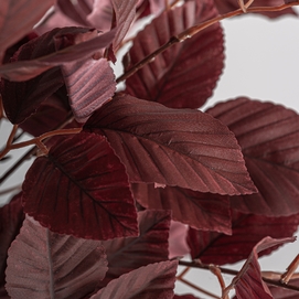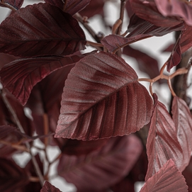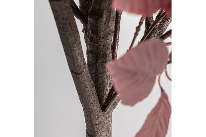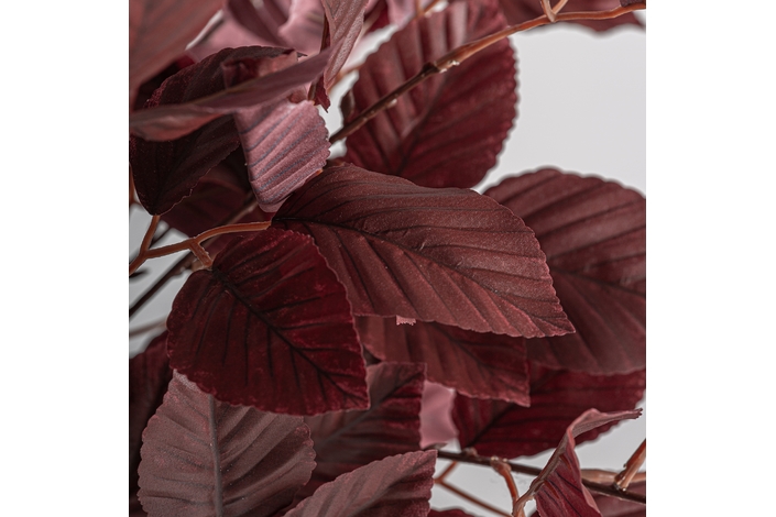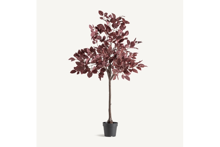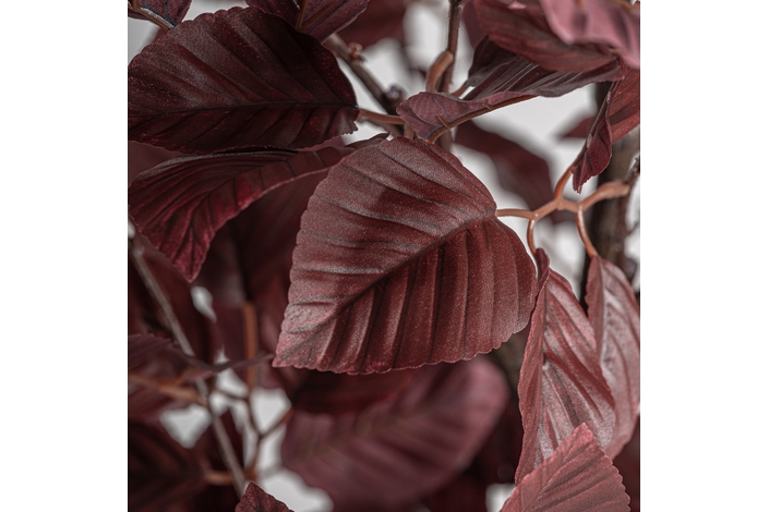 Planta Haya de estilo clásico, fabricado en poliéster en color rojo oscuro, combinado con polietileno en color negro y cemento en color negro.