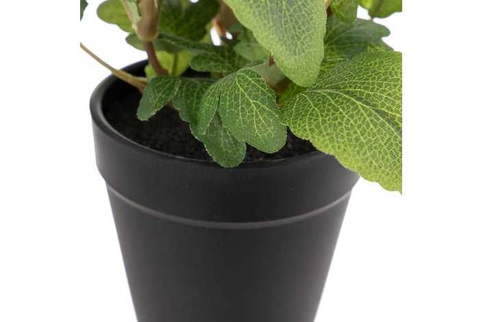 Material planta: Poliéster, polietileno, hierro. Material maceta: polietileno.