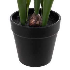 Material planta: Poliéster, polietileno, hierro. Material maceta: polietileno.