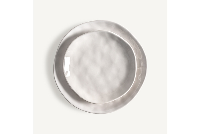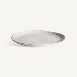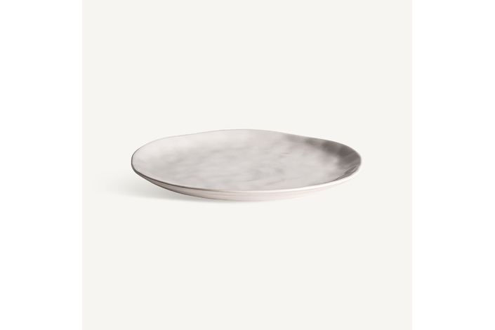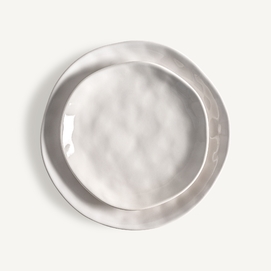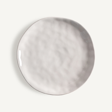 Plato candela, en color blanco roto rugoso, de estilo clásico. Fabricado en porcelana.