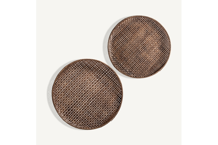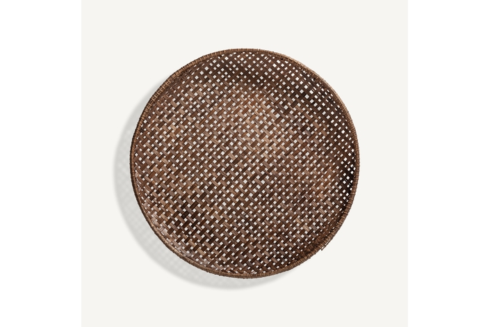 Plato decorativo j/2, en color marrón, de estilo boho. Fabricado en bambú.
