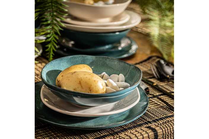 PLATO POSTRE AZUL STONEWARE COCINA 20 X 20 X 2 CM