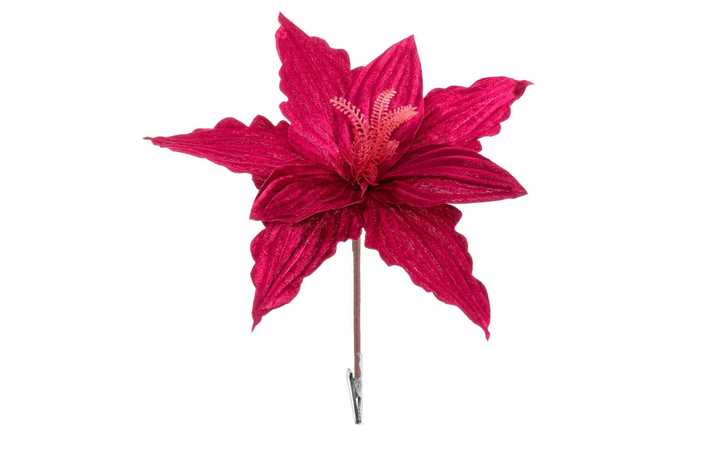 POINSETTIA CON CLIP POLIESTER BORGOÑA 28 X 28 CM