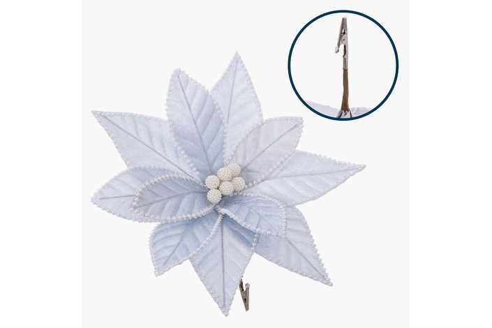 POINSETTIA CON CLIP POLIESTER PLATA-GRIS 29 X 29 CM