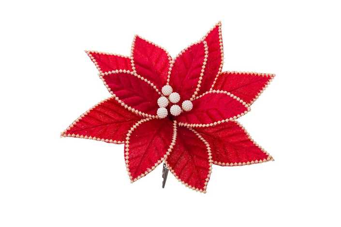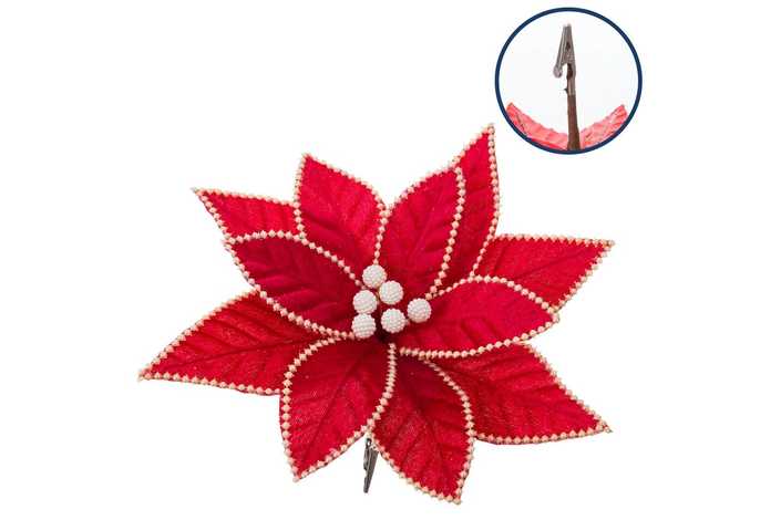 POINSETTIA CON CLIP POLIESTER ROJO 29 X 29 CM