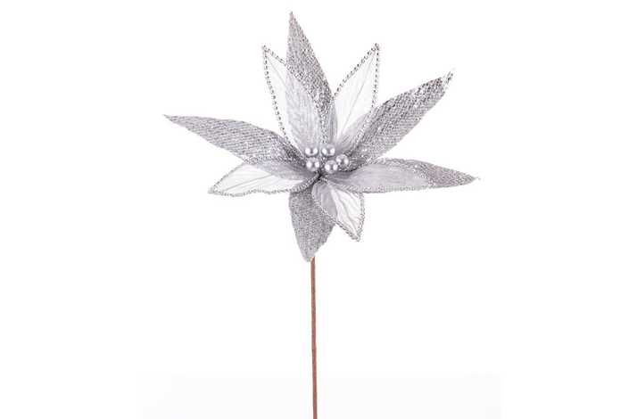 POINSETTIA POLIESTER PLATA 34 X 34 X 40 CM