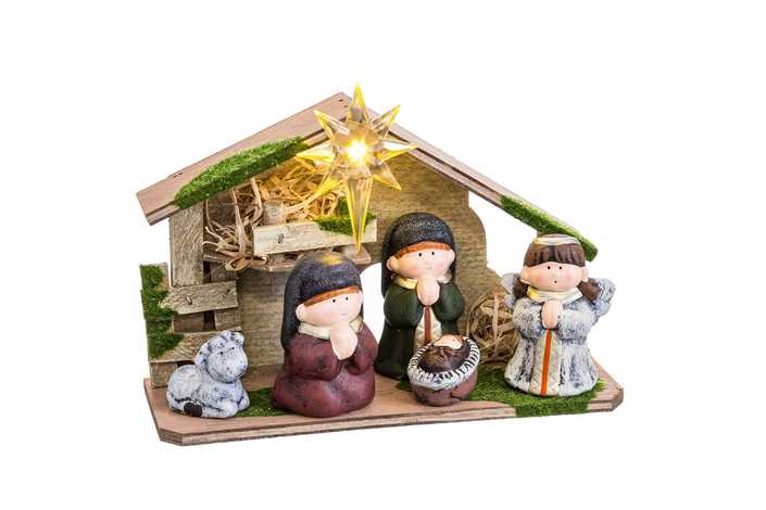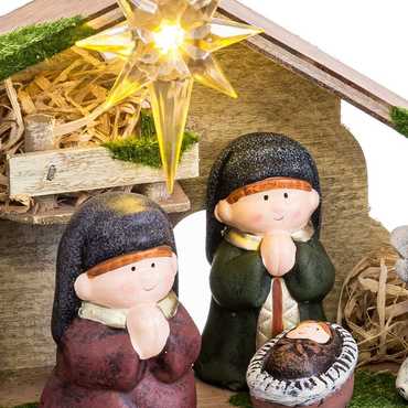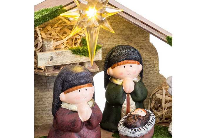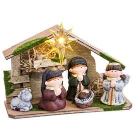 PORTAL CON LUZ 5 FIGURAS CERÁMICA / MDF 22,50 X 8,50 X 16,50