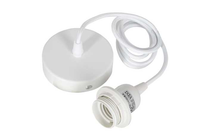 Material: hierro, acrílico. Voltaje: 220-240V. Casquillo:1XE27 Bombilla: 1x 60W (no incluída). Largo cable:130 cm. Dimatro embellecedor: 9,5cm.