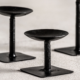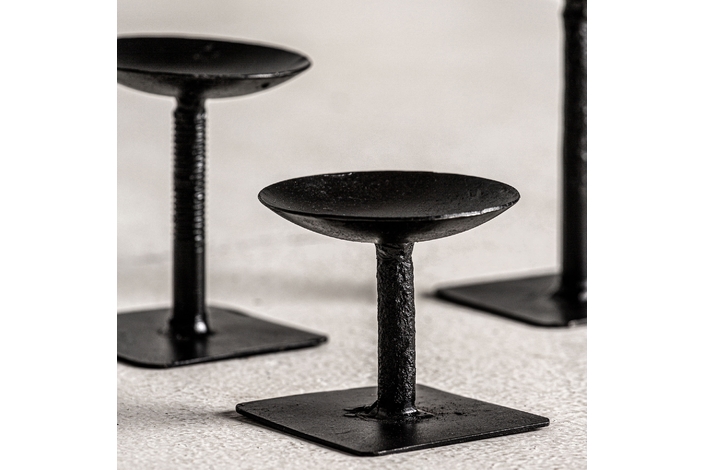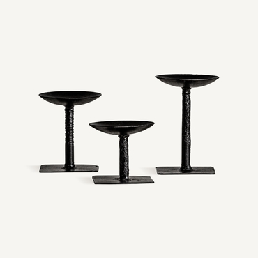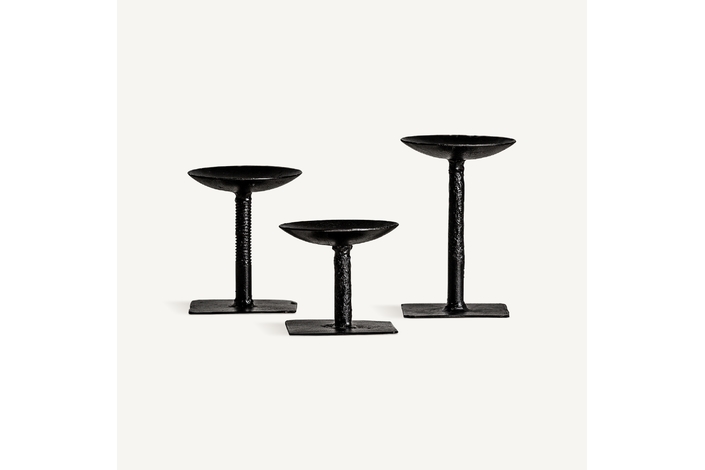 Portavela j/3, en color negro, de estilo étnico. Fabricado en madera de mango reciclada.