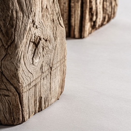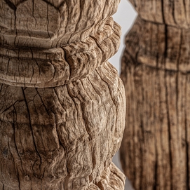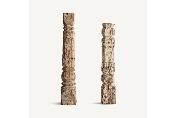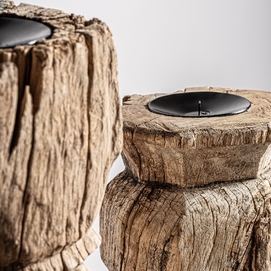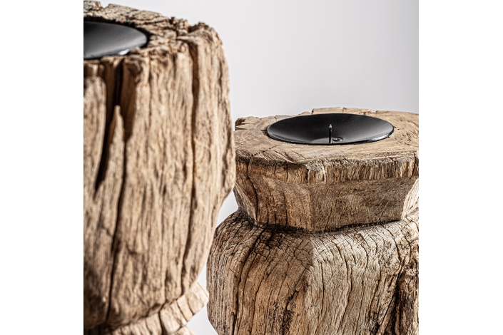 Portavela kelse, en color marrón claro envejecido, de estilo étnico. Fabricado en madera de teka.