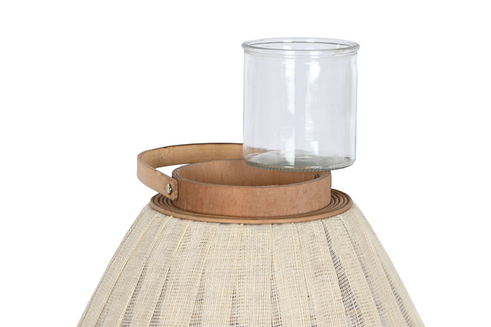 Dimensiones (cm) Longitud 38  |  Fondo 38  |  Altura 84 Peso neto producto (kg) 2,00 Material Madera  |  Lino  |  Cristal