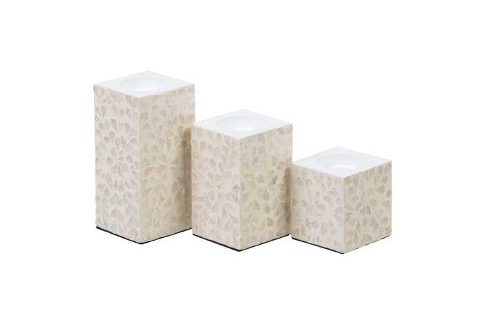 PORTAVELAS BEIGE NÁCAR-MDF DECORACIÓN 10,50 X 10,50 X 10,50