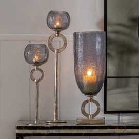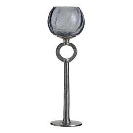 PORTAVELAS GRIS-PLATA CRISTAL-METAL 13 X 13 X 38 CM
