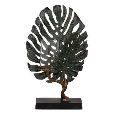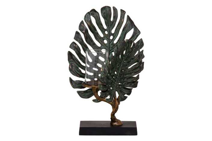 PORTAVELAS HOJAS VERDE-COBRE 28 X 10 X 45 CM