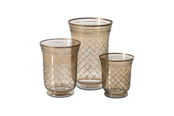 PORTAVELAS MARRÓN CRISTAL DECORACIÓN 15 X 15 X 18 CM