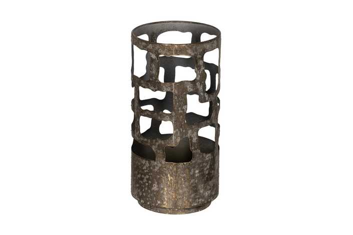 PORTAVELAS ORO ENVEJECIDO METAL 15 X 15 X 30 CM