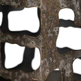 PORTAVELAS ORO ENVEJECIDO METAL 15 X 15 X 35 CM