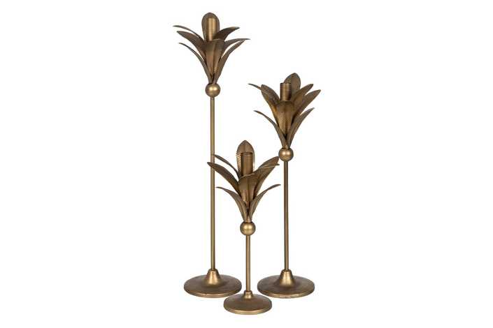 PORTAVELAS ORO METAL DECORACIÓN 15 X 15 X 43 CM
