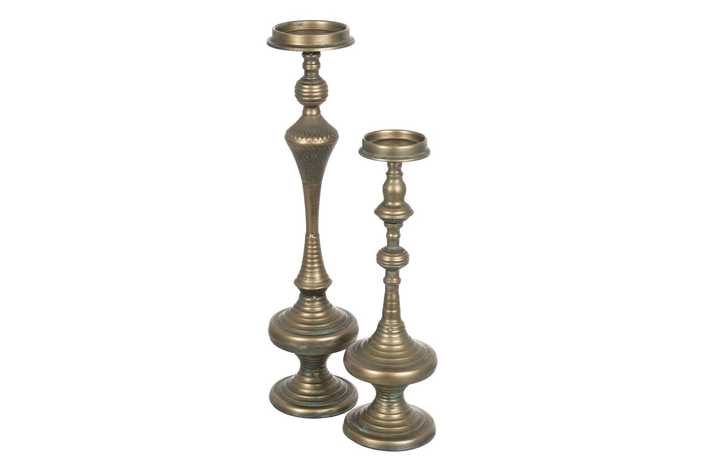 PORTAVELAS ORO VIEJO METAL DECORACIÓN 14 X 14 X 59 CM