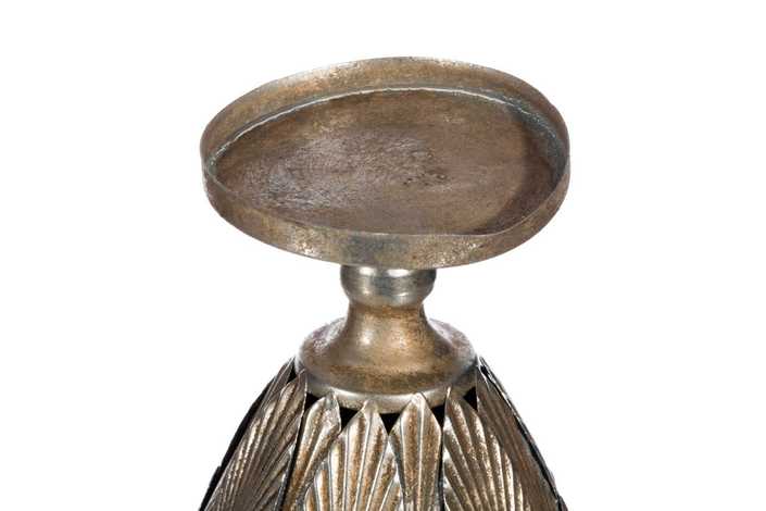 PORTAVELAS PLATA ENVEJECIDA METAL 18 X 18 X 35 CM