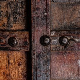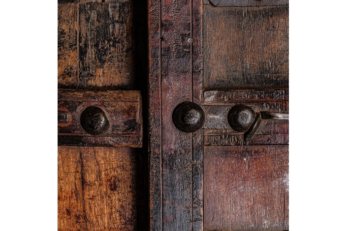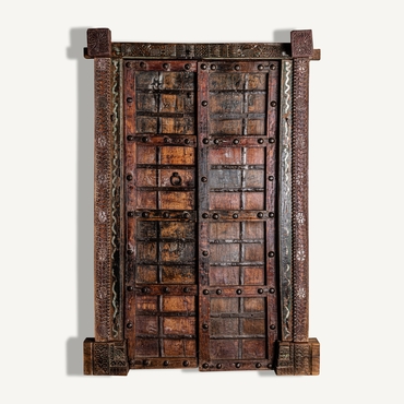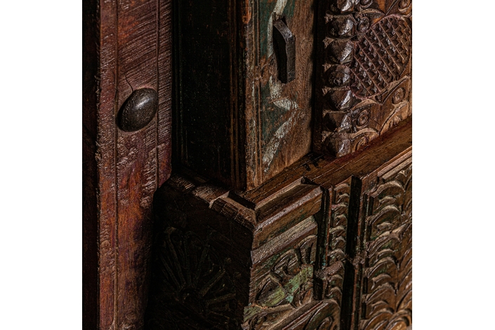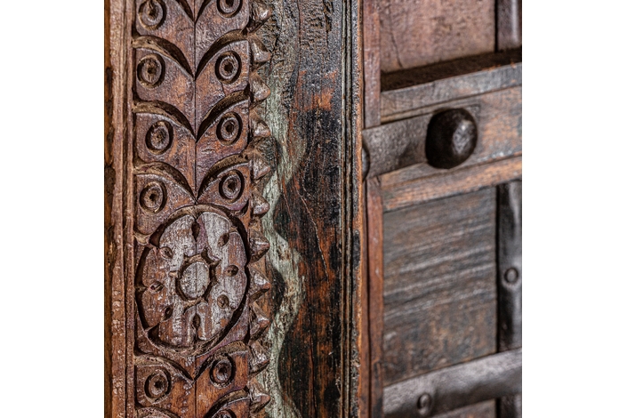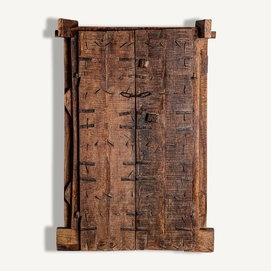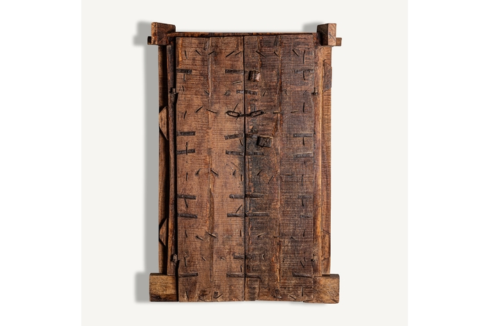 Puerta peigie, en color marrón envejecido, de estilo étnico. Fabricado en madera de teka.