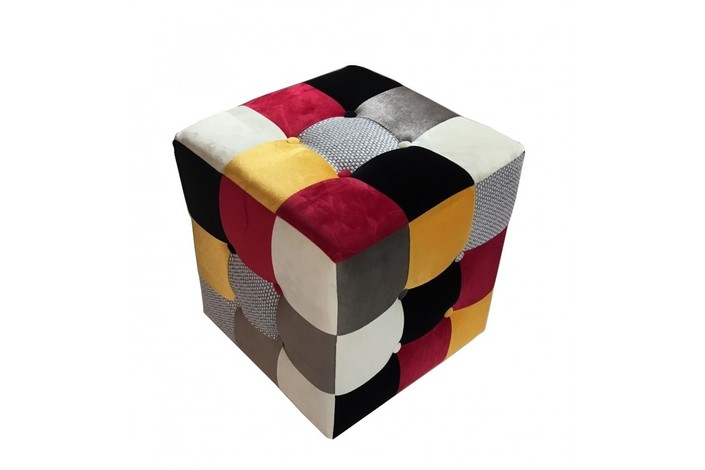 Puff de diseño, tapizado en tejido patchwork