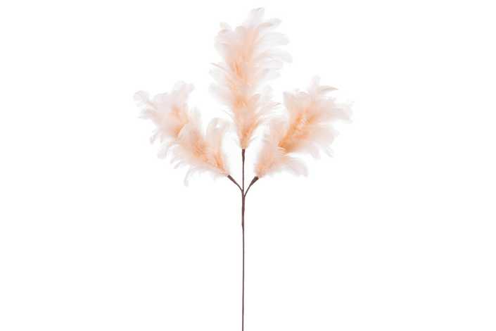 RAMA 3 HOJAS PLUMAS CREMA 11 X 55 CM