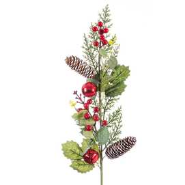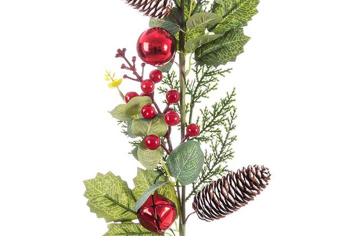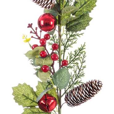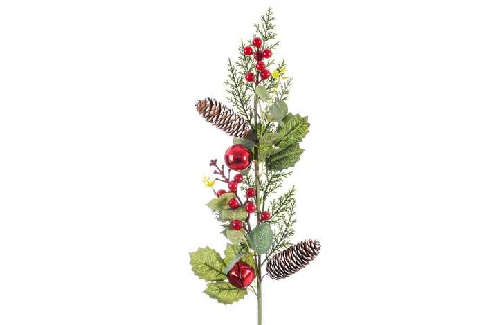 RAMA ACEBO CASCABEL , BOLA Y PIÑAS 70 CM