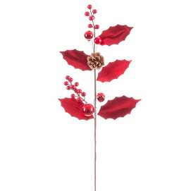 RAMA HOJAS ROJO PIÑA ACEBO 65 CM
