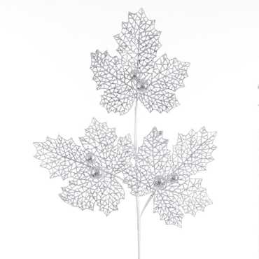 RAMA HOJAS Y BOLAS PLATA 85 CM