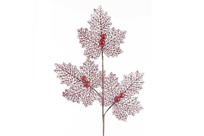 RAMA HOJAS Y BOLAS ROJO 85 CM