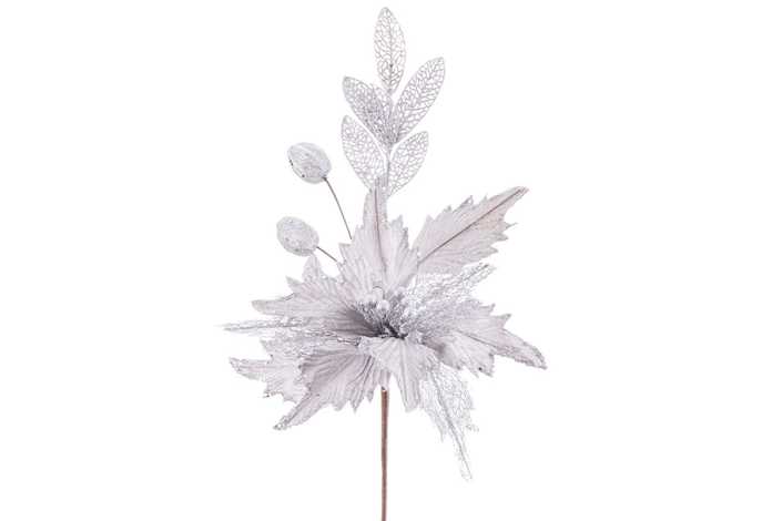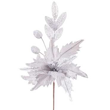RAMA POINSETTIA TEJIDO PLATA 32 CM