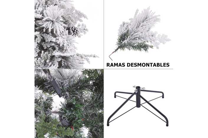 TIPO DE RAMAS: PLEGABLES IGNÍFUGO: SI MATERIAL: PE-PVC ÁRBOL DESMONTABLE: SI MATERIAL PIE: METAL
