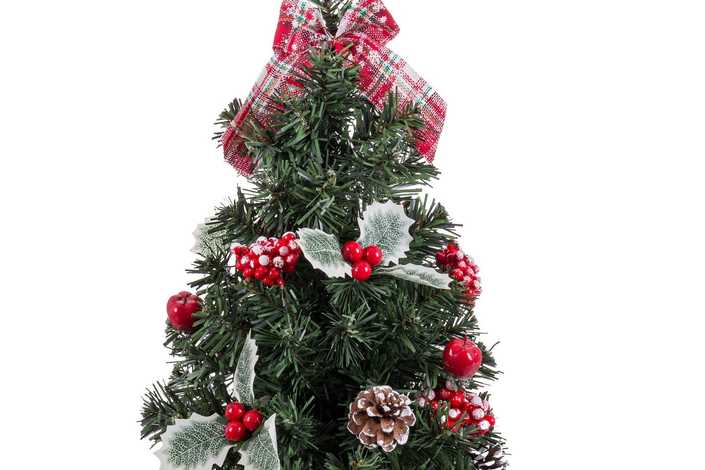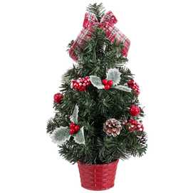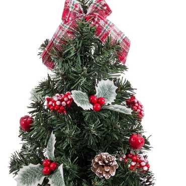 ÁRBOL ACEBO, PIÑA Y LAZO PVC/PIÑAS ROJO 26 X 26 X 50 CM