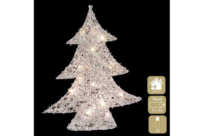 ÁRBOL CON LUZ METAL PLATA 28 X 7 X 35 CM