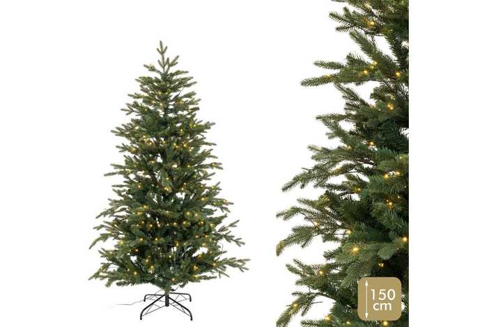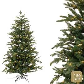 ÁRBOL DESMONTABLE. RAMAS PLEGABLES IGNÍFUGAS. FUNCIONA A LA RED ELÉCTRICA: DC 31V 3.6W CONTIENE: 260 LEDS DE LUZ CÁLIDA. LUZ FIJA. IP20 (SOLO USO INTERIOR) DIÁMETRO DEL ÁRBOL: 115 CM. BASE DE METAL: 45 CM DE DIÁMETRO