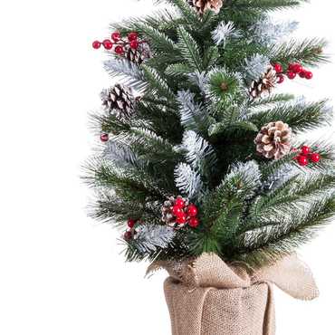 DECORADO CON PIÑAS Y ACEBO. DIÁMETRO DEL ÁRBOL: 44 CM. MACETA CON TELA DE SACO.