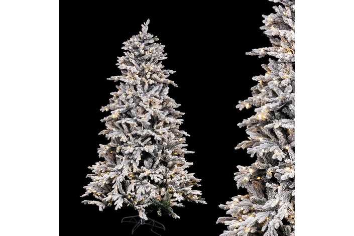 ÁRBOL NEVADO 180 CM CON LUCES LED A RED ELÉCTRICA. 3,6 W. IP20. USO INTERIOR. 811 RAMAS. 310 LUCES. PIE METÁLICO.