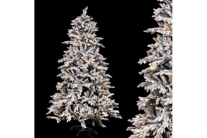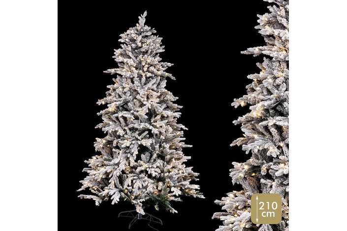 ÁRBOL NEVADO 210 CM CON LUCES LED A RED ELÉCTRICA. 3,6 W. IP20. USO INTERIOR. 1299 RAMAS. 400 LUCES. PIE METÁLICO.